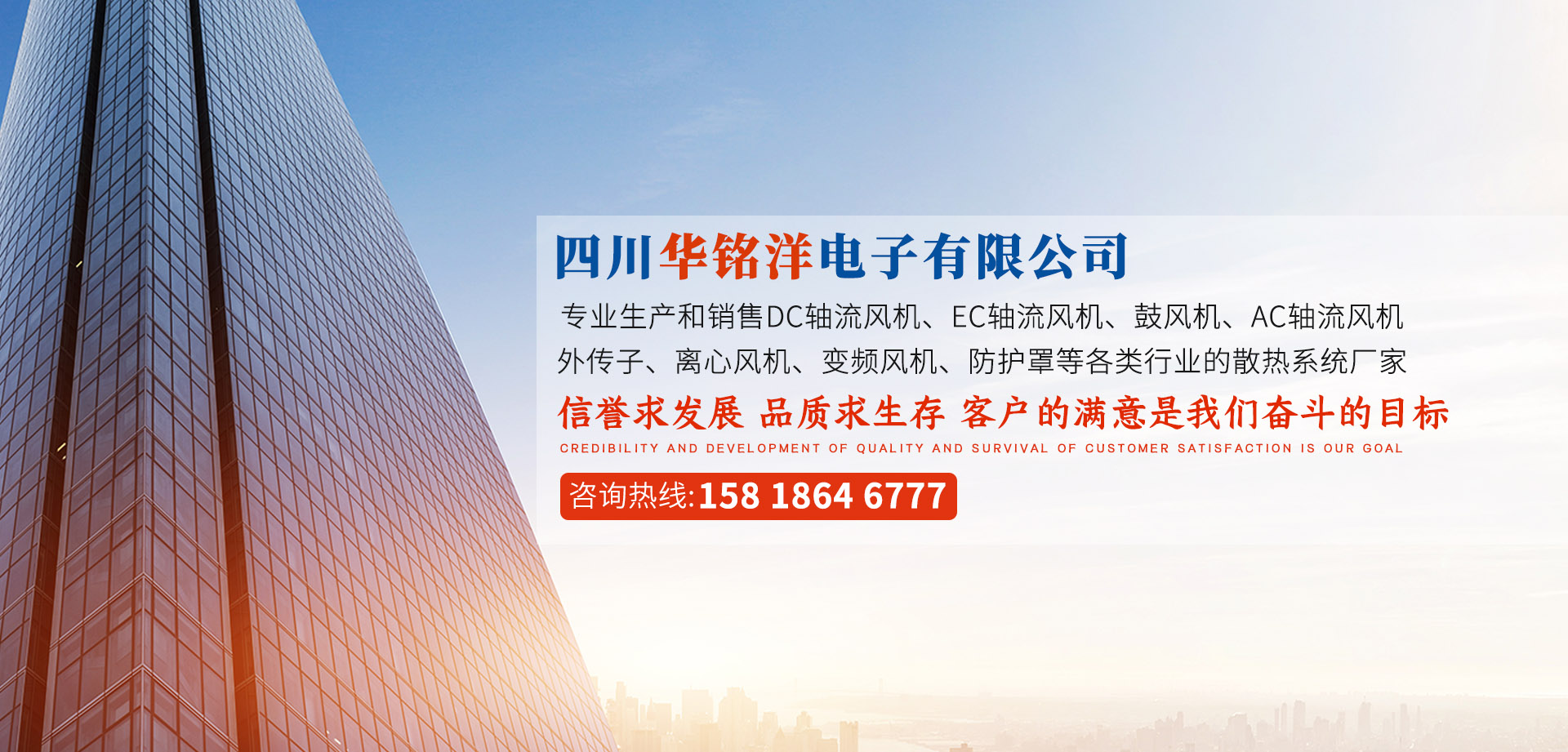 四川華銘洋電子有限公司是一家專業生產和銷售DC軸流風機、EC軸流風機、鼓風機、AC軸流風機、外傳子、離心風機、變頻風機、防護罩等各類行業的散熱系統廠家。   我公司司產品廣泛應用于:IP領域、運動器材、焊接、電源系統、儀器儀表、機械、機柜、機箱、電源、電器、通信設備、計算機、自動控制、通風散熱系統等各類行業的散熱系統廠家華銘洋公司全方位提供各行各業設備或系統散熱方案,解決設備或系統散熱問題。在產...